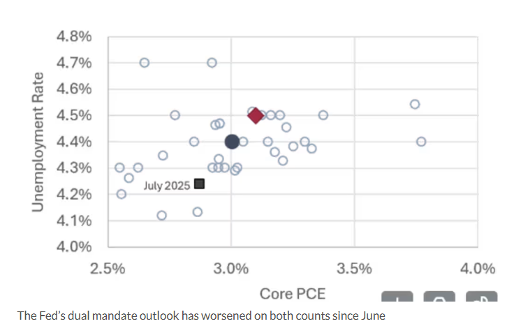 高盛則相對樂觀,認為就業成長疲軟及資料下修擔憂已促使聯準會傾向重啟降息。其報告預測,受經濟活動放緩、白宮減員、移民執法收緊等因素影響,勞動力市場將呈「平庸」 狀態,疊加關稅帶來的經濟不確定性,美聯儲可能在9 月、10 月和12 月各降息25 個基點,明年再降兩次;若失業率大幅上升或就業數據更糟,不排除單次就業數據可能不排除單基的就業數據可能。