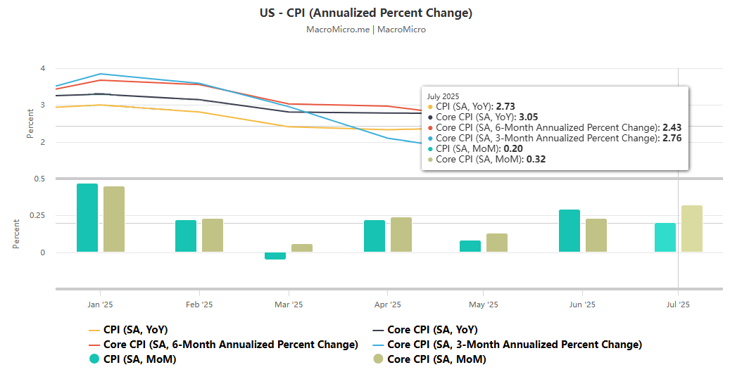2025年7月,美國經濟數據密集釋放,CPI通膨數據的波動、金融市場的連鎖反應、聯準會政策預期的分化,以及持續擴大的財政赤字,共同勾勒出當前經濟運作的複雜圖景。一、CPI數據超預期... 2025年7月,美國經濟數據密集釋放,CPI通膨數據的波動、金融市場的連鎖反應、聯準會政策預期的分化,以及持續擴大的財政赤字,共同勾勒出當前經濟運作的複雜圖景。