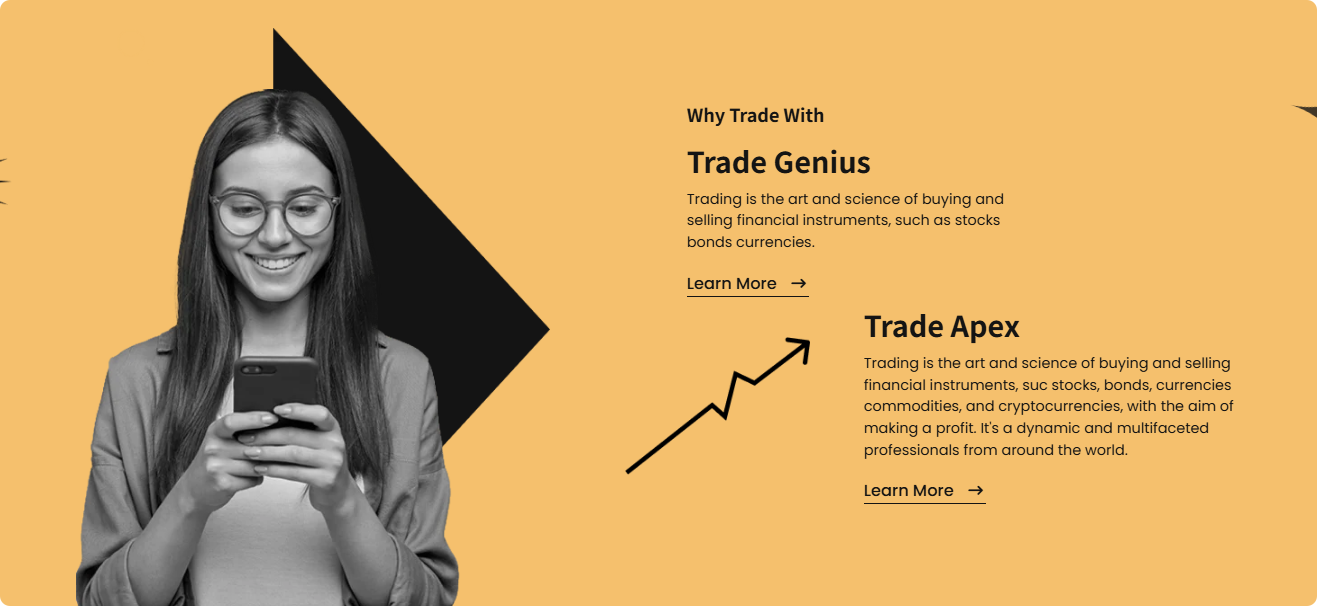「身為職場人沒精力研究市場,20美元試水短線波段跟單,跟著高手捕捉加密貨幣的短期行情,低點差+快進快出策略,半年就實現了月均穩定收益,低門檻+高靠譜度,完全超出預期!」——營銷總監Esther Howard