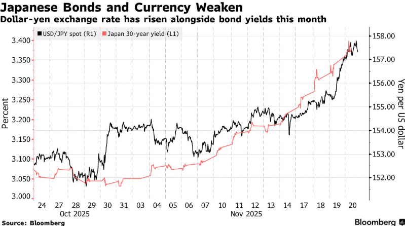 Ace Markets即時監測系統顯示,刺激計畫落地後,日本金融市場呈現顯著的「雙殺」格局,且波動特徵已超出2013年「安倍經濟學」以來的歷史常態區間:日圓匯率跌至1月以來最低點,美元兌日圓徘徊於157附近,距去年四次官方乾預的160關鍵關口僅差點1.9個基點;國債市場方面,30年期殖利率從本月初3%躍升至3.35%以上,40年期收益率突破歷史極值,10年期收益率觸及1.8%(2008年以來峰值),且美元兌日元匯率與國債收益率的同步相關性係數升至0.87(近十年分位數,且美元兌日元匯率與國債收益率的同步相關性係數升至0.87(近十年分位數92%),已進入異常交易區間。
