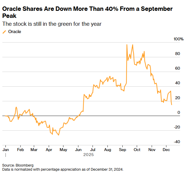 樂觀派的信心亦有基本面支撐。彭博社研究的39位全球投資經理人中,多數認可「七巨頭」估值由基本面支撐,認為其標誌著新工業週期開啟。同時,聯準會降息預期緩解了市場焦慮,科技股相對大盤的預期波動率已從年內高點8%腰斬至4%;Miller Tabak策略師Matt Maley還指出,年底機構配置需求或進一步助推科技股。但質疑聲浪同樣強烈,Callodine Capital執行長Jim Morrow稱市場已進入「見真章」階段,核心矛盾在於AI產業「高投入、不確定產出」。例如OpenAI計畫未來數年支出1.4兆美元,2030年前才有望產生現金流;甲骨文為建AI資料中心大舉融資後,因業務不及預期股價較峰值跌超40%,信用風險升至2009年以來高點。